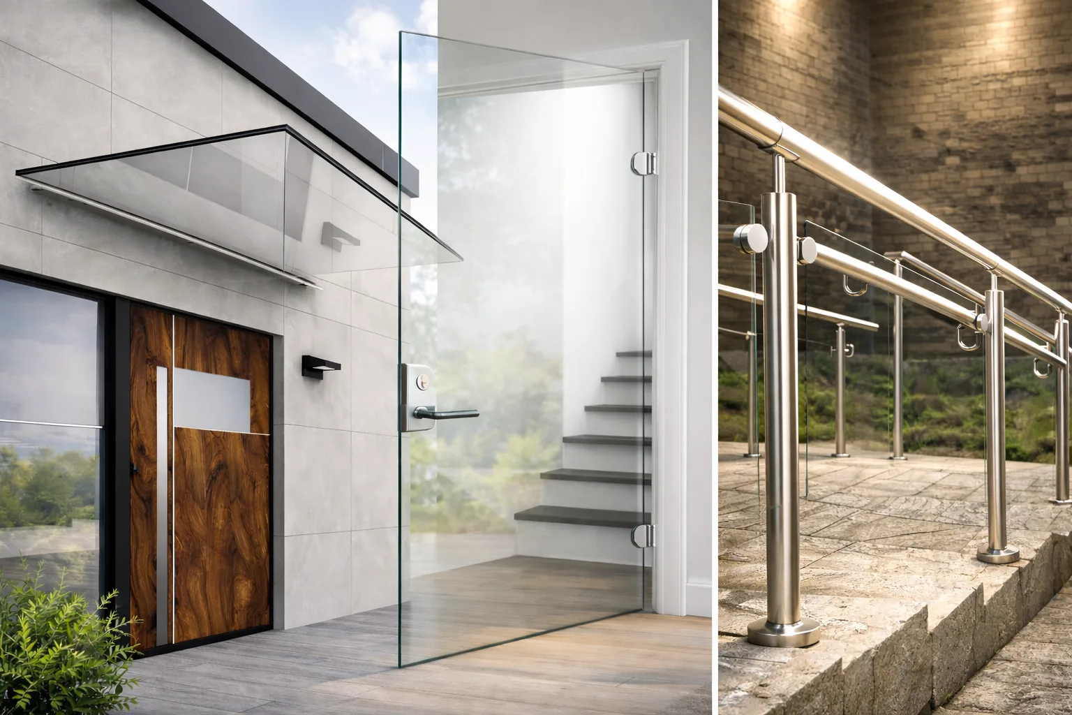 Räckesdelar – Ledstänger – LED belysning räcken – Entrétak i glas