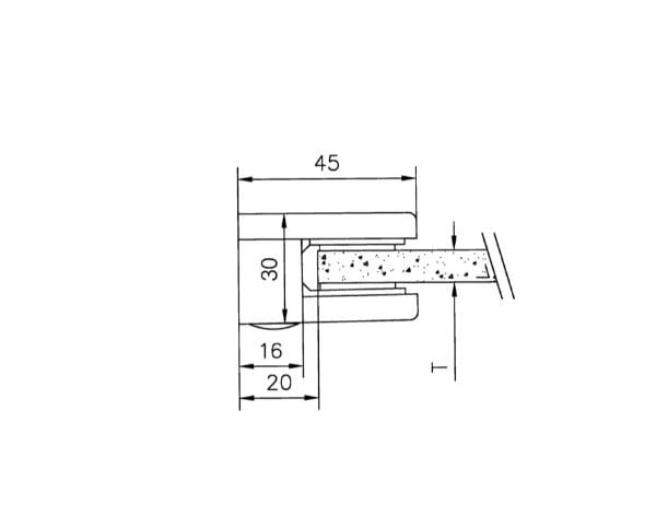 Klämfäste för glas med plan baksida. Montera mot plan vägg eller mot fyrkantiga stolpar.