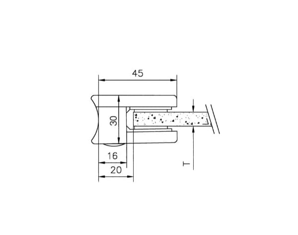 • Klämfäste glas modell 21M mässing, rund baksida för rund stolpe 38-42mm.